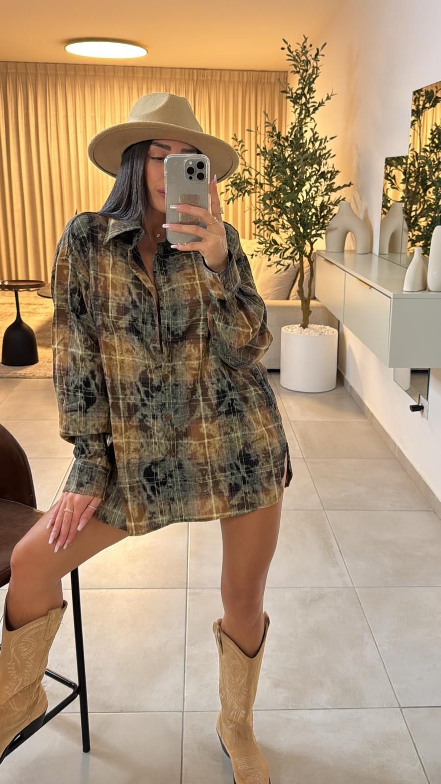 חולצה מכופתרת חום שמנת